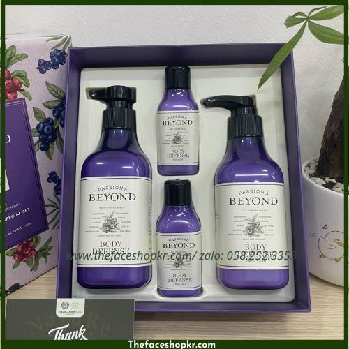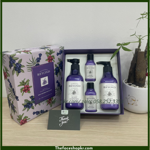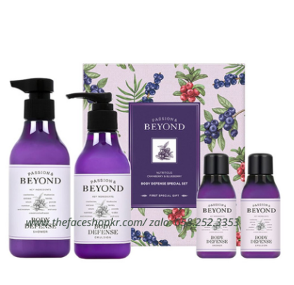 Bộ Chăm Sóc Cơ Thể Sữa Dưỡng Gel Tắm Hương Việt Quất Tươi Mát Beyond Defense Body Set (4 sản phẩm)