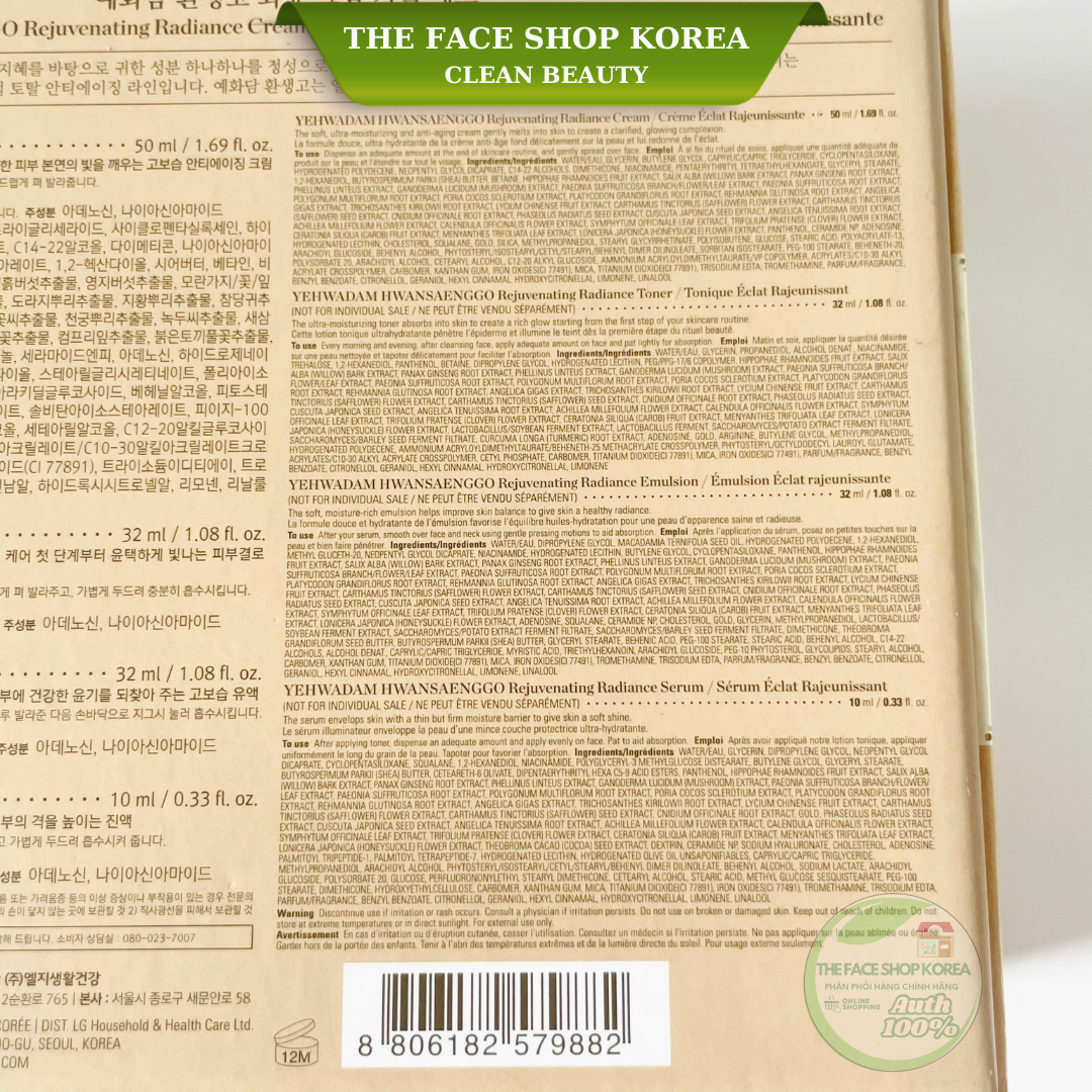 Bộ kem dưỡng làm sáng trắng da Thefaceshop YEHWADAM HWANSAENGGO REJUVENATING RADIANCE CREAM SPECIAL SET (4pc)