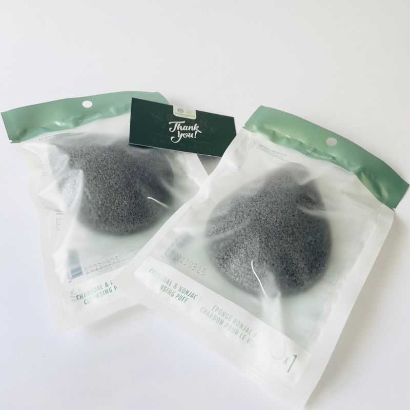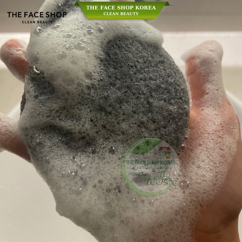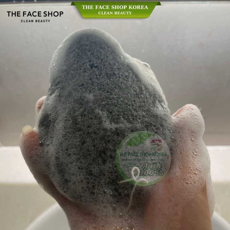 Bông rửa mặt bọt biển làm sạch sâu da mặt sợi mềm mại khử khuẩn Charcoal & Konjac Cleansing Puff The Face Shop