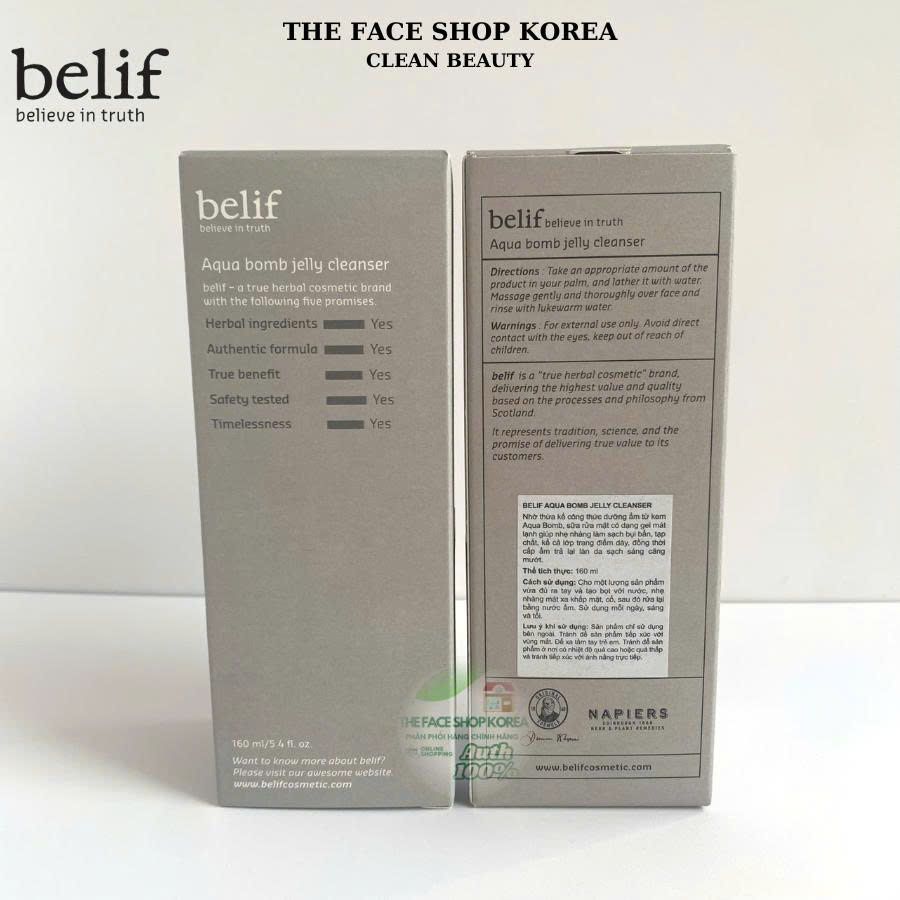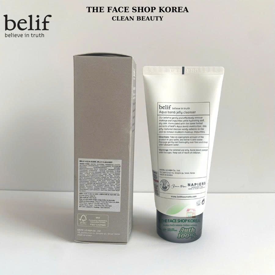 Gel rửa mặt dạng thạch cấp ẩm sạch sâu Belif Aqua Bomb Jelly Cleanser 160 ML