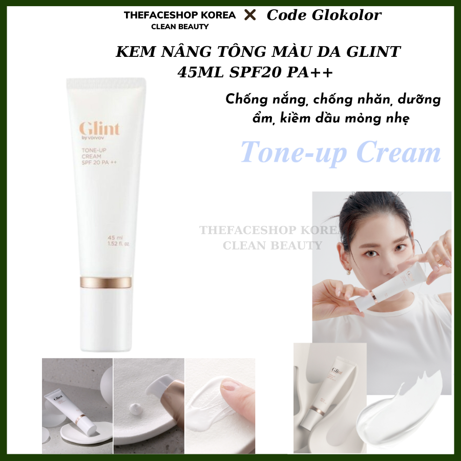 [Hàng Công Ty] Kem dưỡng nâng tông màu da chống nắng chống nhăn dưỡng ẩm kiềm dầu mỏng nhẹ Glint Tone Up Cream 45ml SPF20 PA++