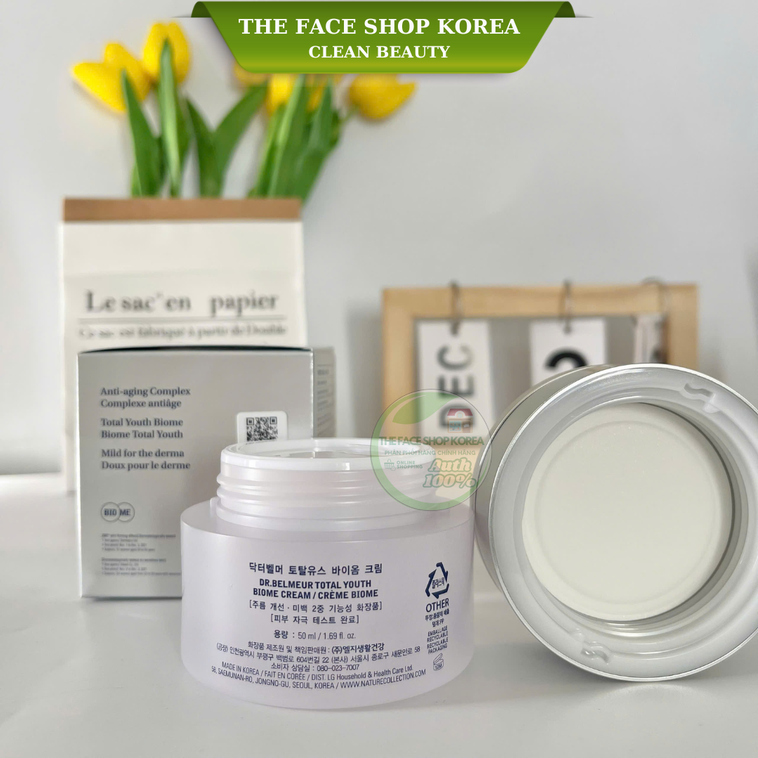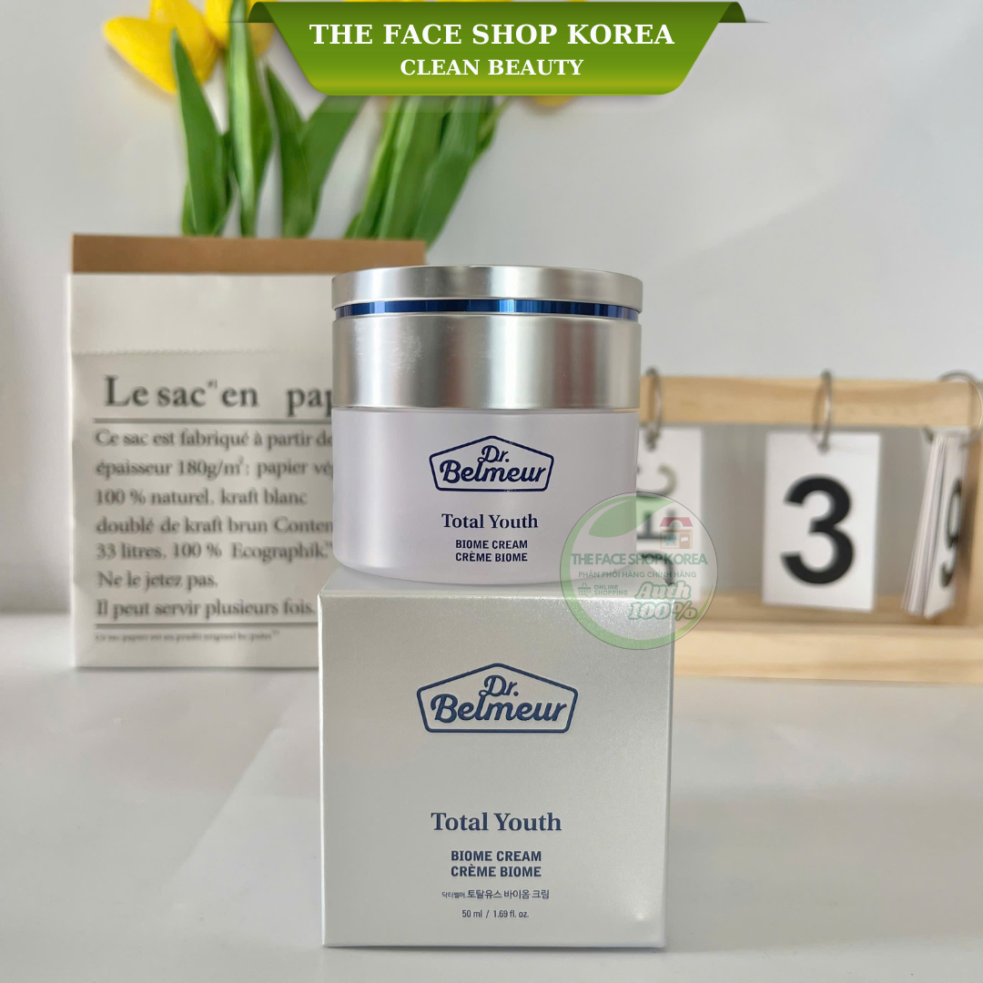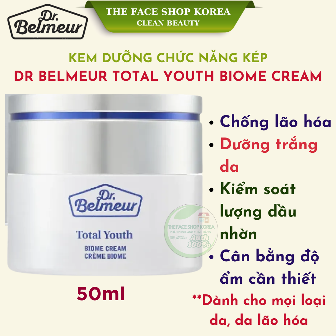 Kem dưỡng chức năng kép chống lão hóa và dưỡng trắng da The Face Shop Dr Belmeur Total Youth Biome Cream 50ml