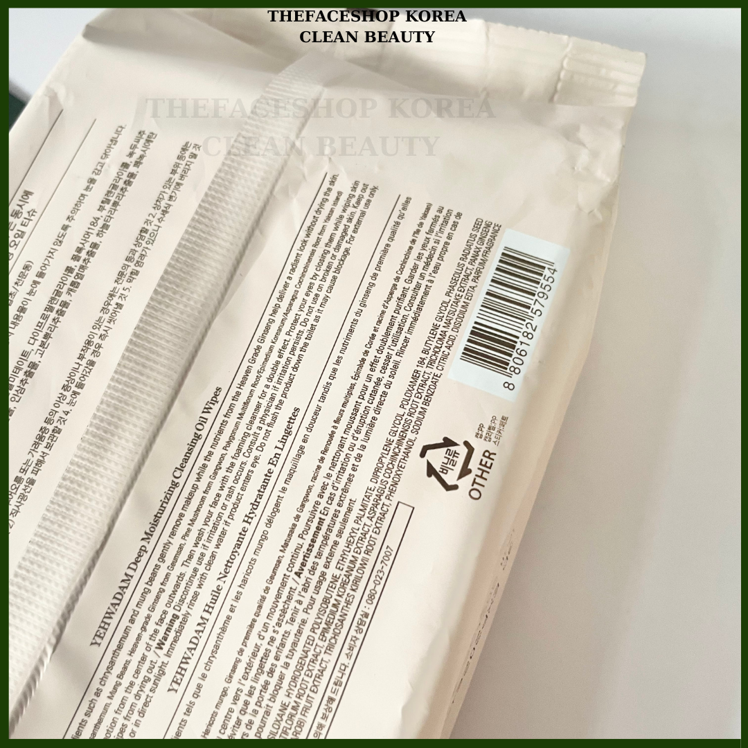 Khăn ướt tẩy trang Đông Y Yehwadam Deep Moisturizing Cleansing Oil Wipes 50 miếng