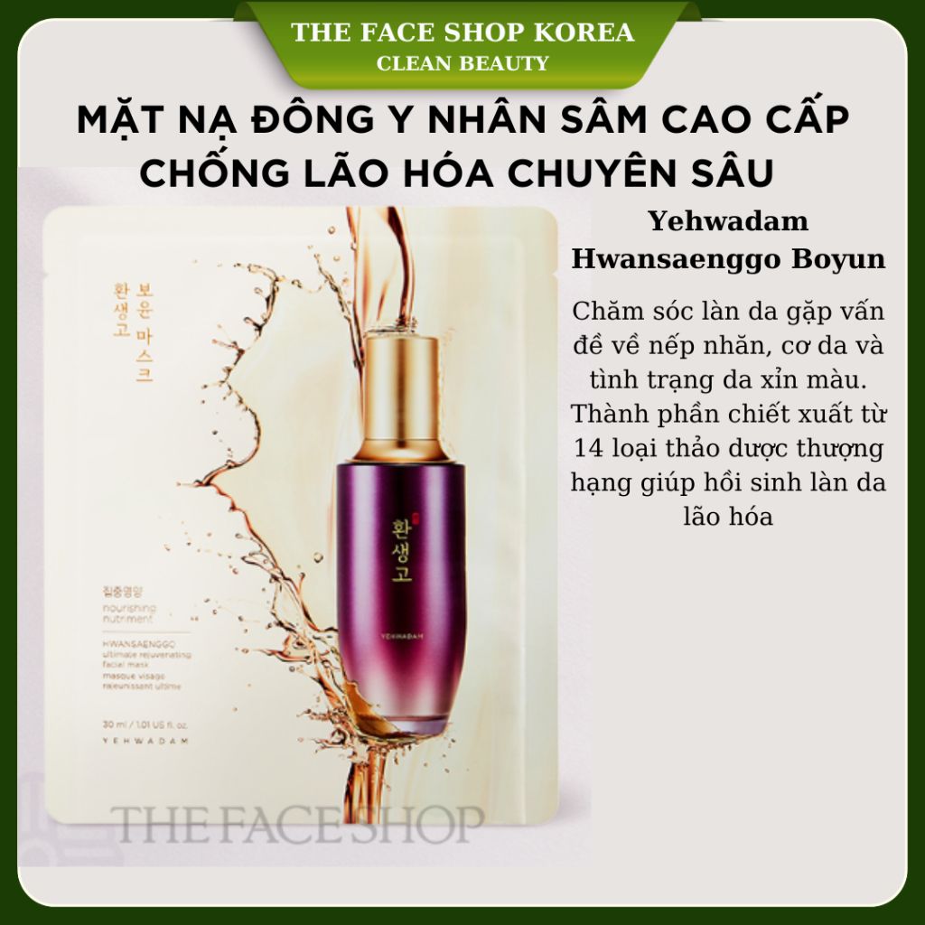 Mặt nạ cao cấp trẻ hóa da đông y THEFACESHOP Yehwadam Hwansaenggo Ultimate Rejuvenating Facial Mask 30ml