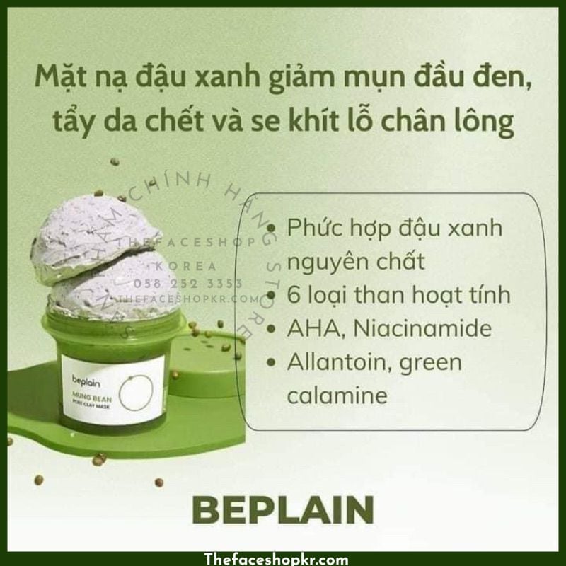 Mặt Nạ Đất Sét Cho Da Dầu Da Lỗ Chân Lông To Mung Bean Beplain Pore Clay Mask 120ml