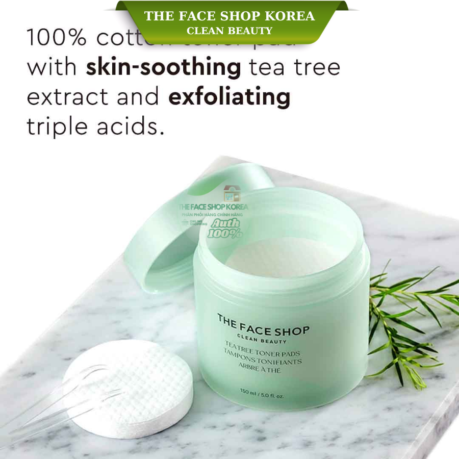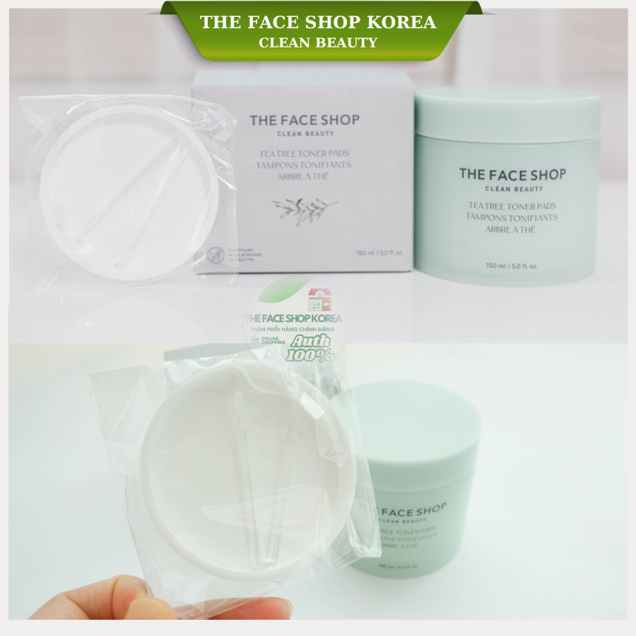 Nước hoa hồng se khít lỗ chân lông The Face Shop dạng miếng bông Clean Beauty Tea Tree Pore Toner Pads 150ml