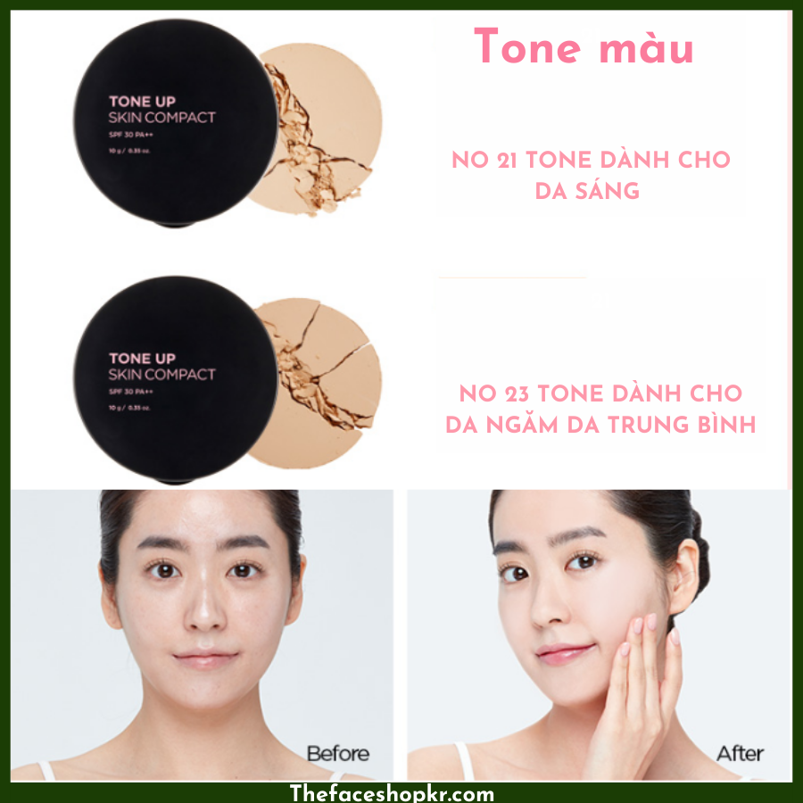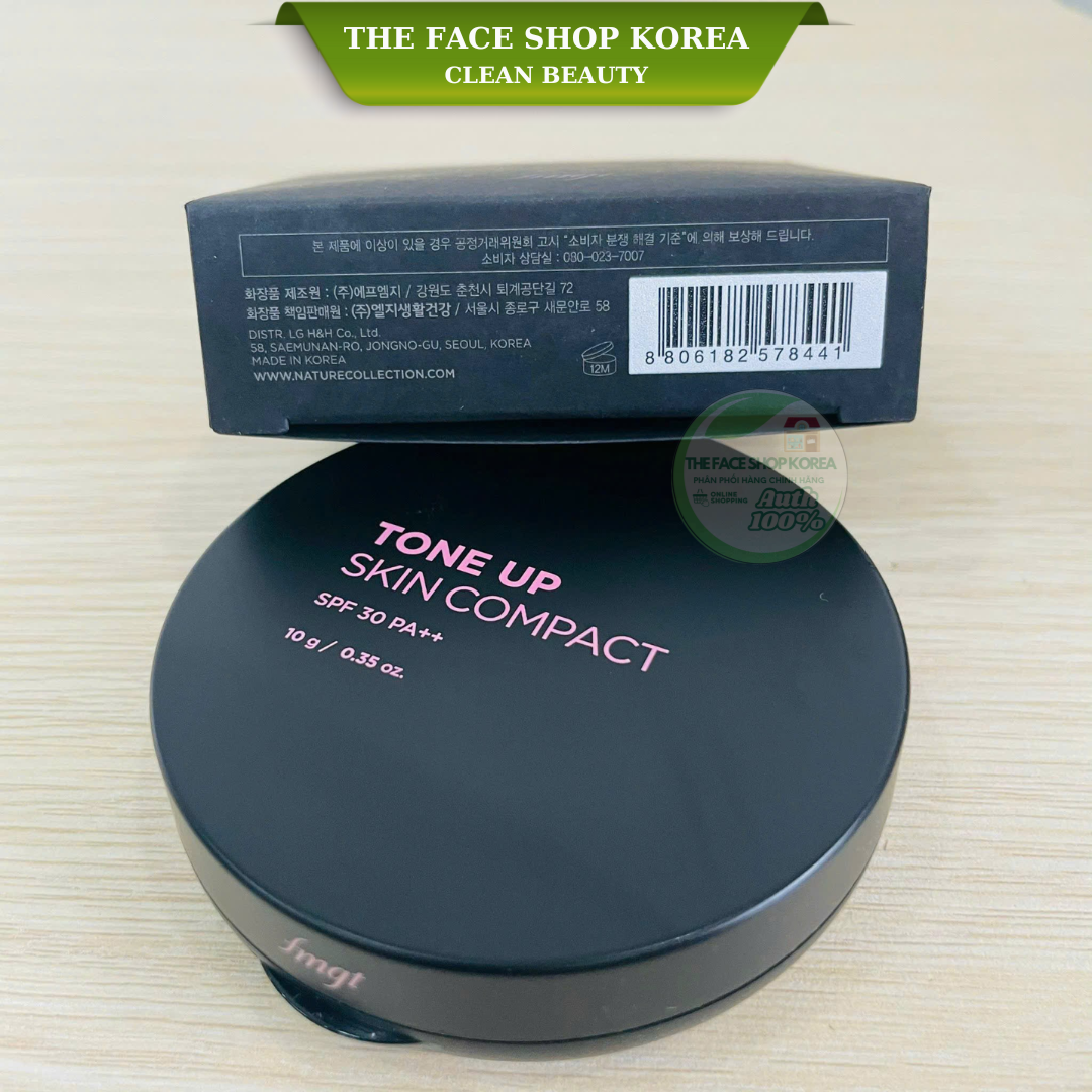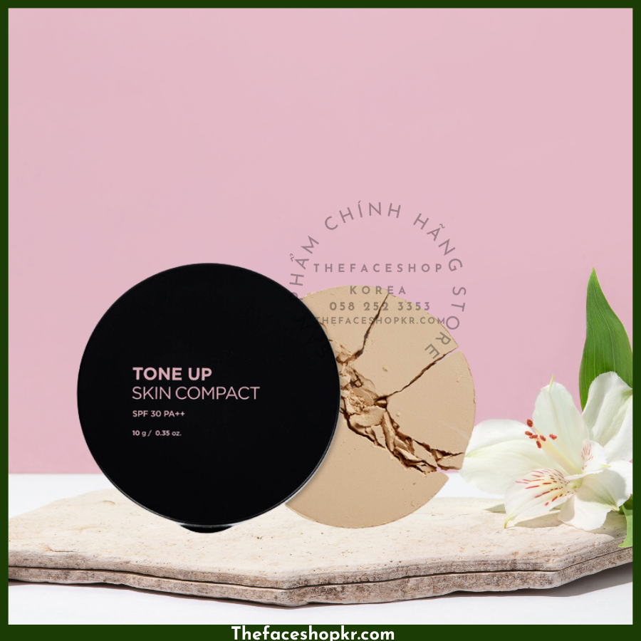 Phấn phủ che khuyết điểm nâng tông da sáng mịn tươi tắn The Face Shop Tone Up Skin Compact 10g chống nắng SPF30 PA++