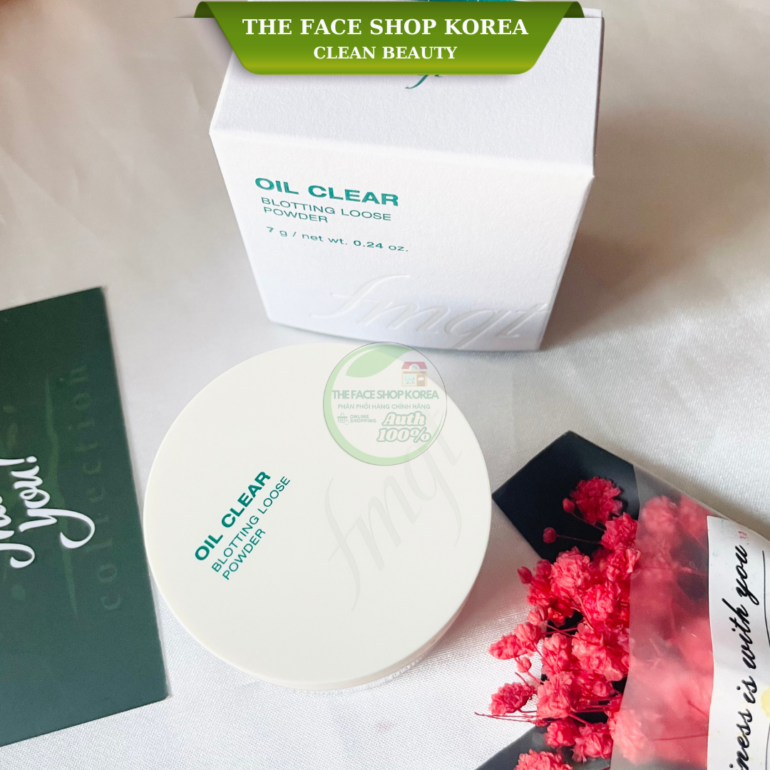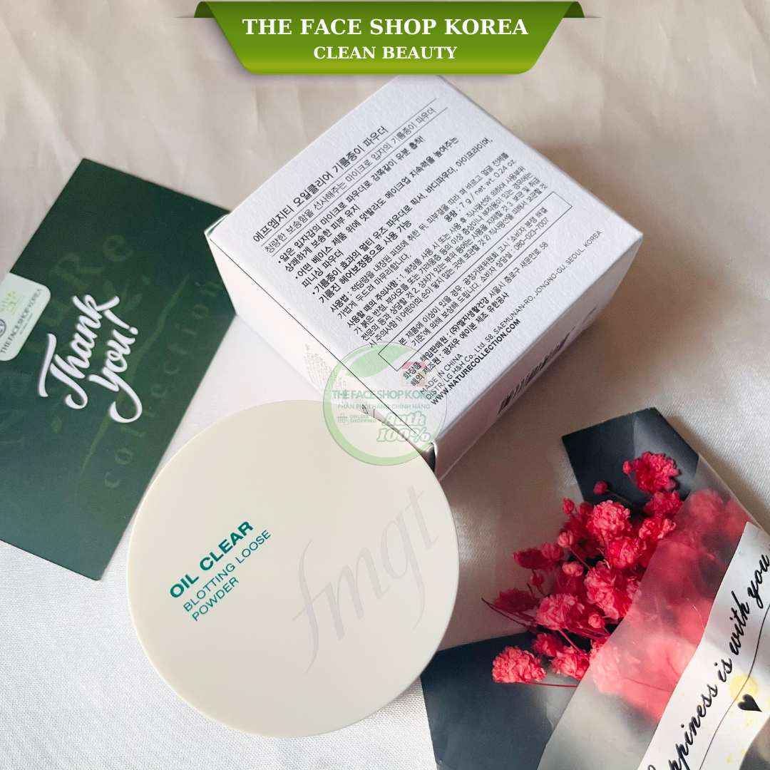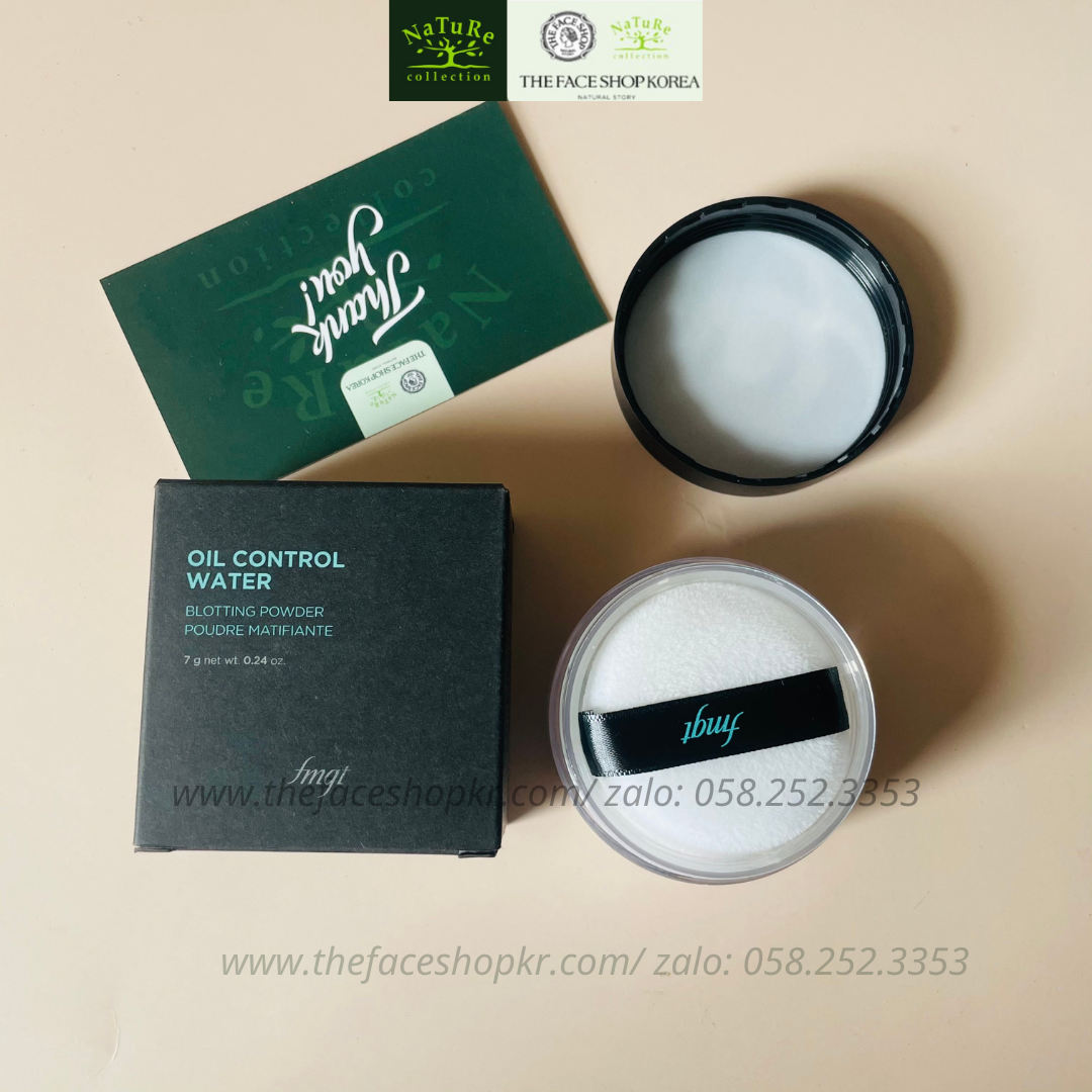 Phấn phủ dạng bột trong suốt kiểm soát nhờn The Face Shop fmgt Oil Control Water Blotting Powder 7g cho da dầu hỗn hợp