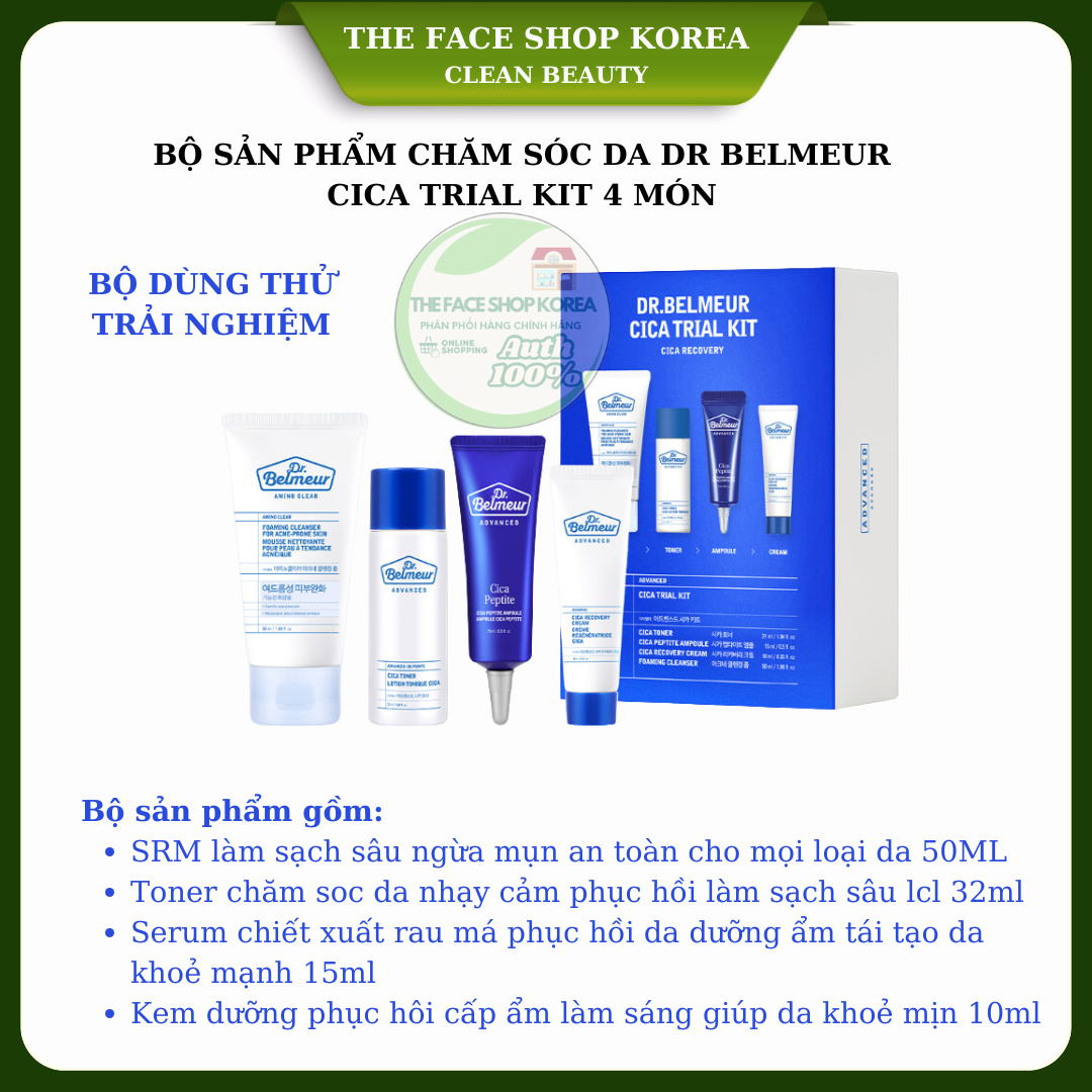 Bộ Kit Chăm Sóc da bản Dùng Thử Dr Belmeur Cica Trial Kit 4 món