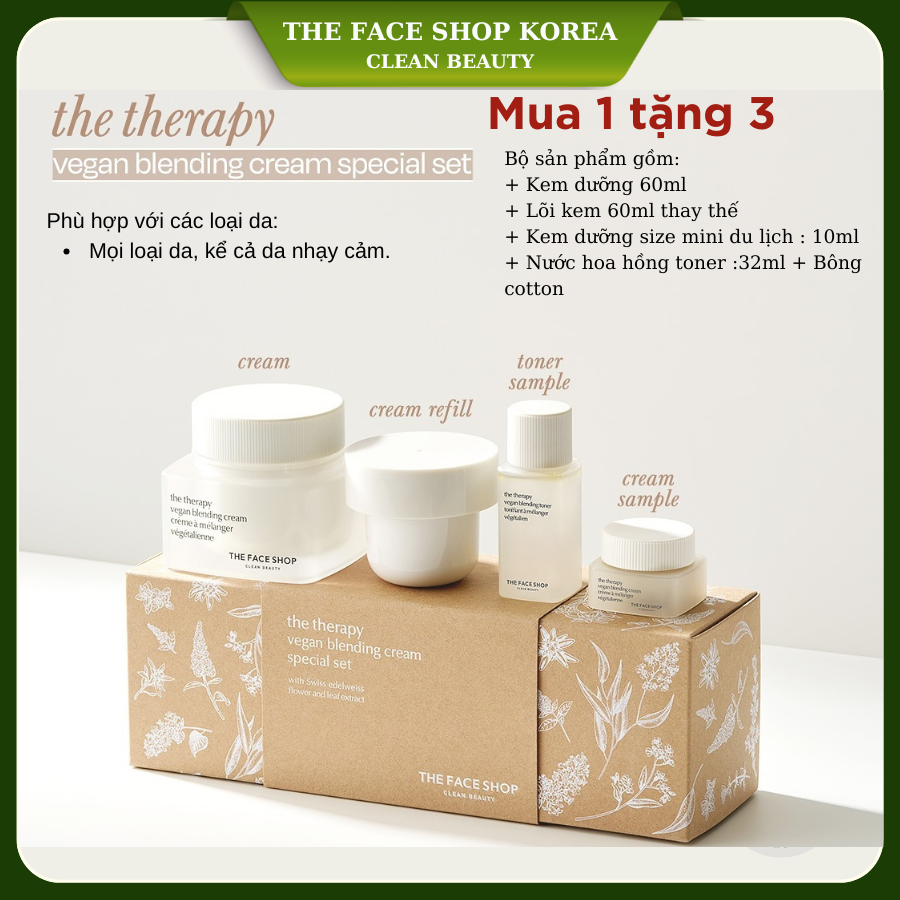 Set Kem Dưỡng Ẩm Thuần Chay Chống Lão Hóa THE FACE SHOP The Therapy Vegan Blending Cream