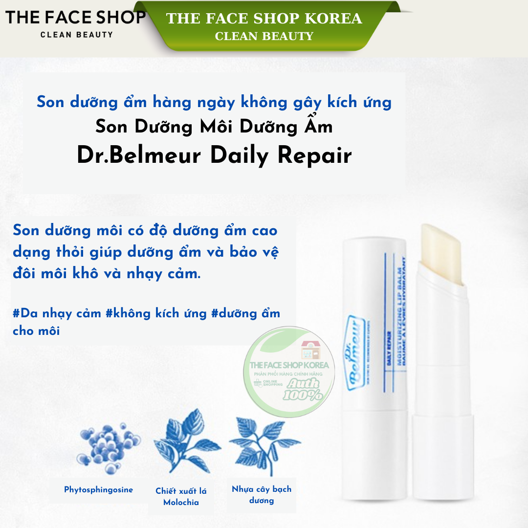 Son dưỡng môi cấp ẩm không màu THEFACESHOP Dr.Belmeur Daily Repair Moisturizing Lip Balm 4g