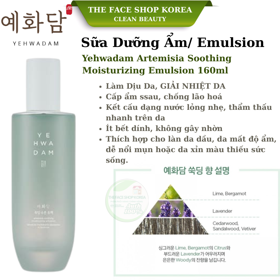 Sữa Dưỡng Ẩm Làm Dịu Da Yehwadam Artemisia Soothing Moisturizing Emulsion 160ml