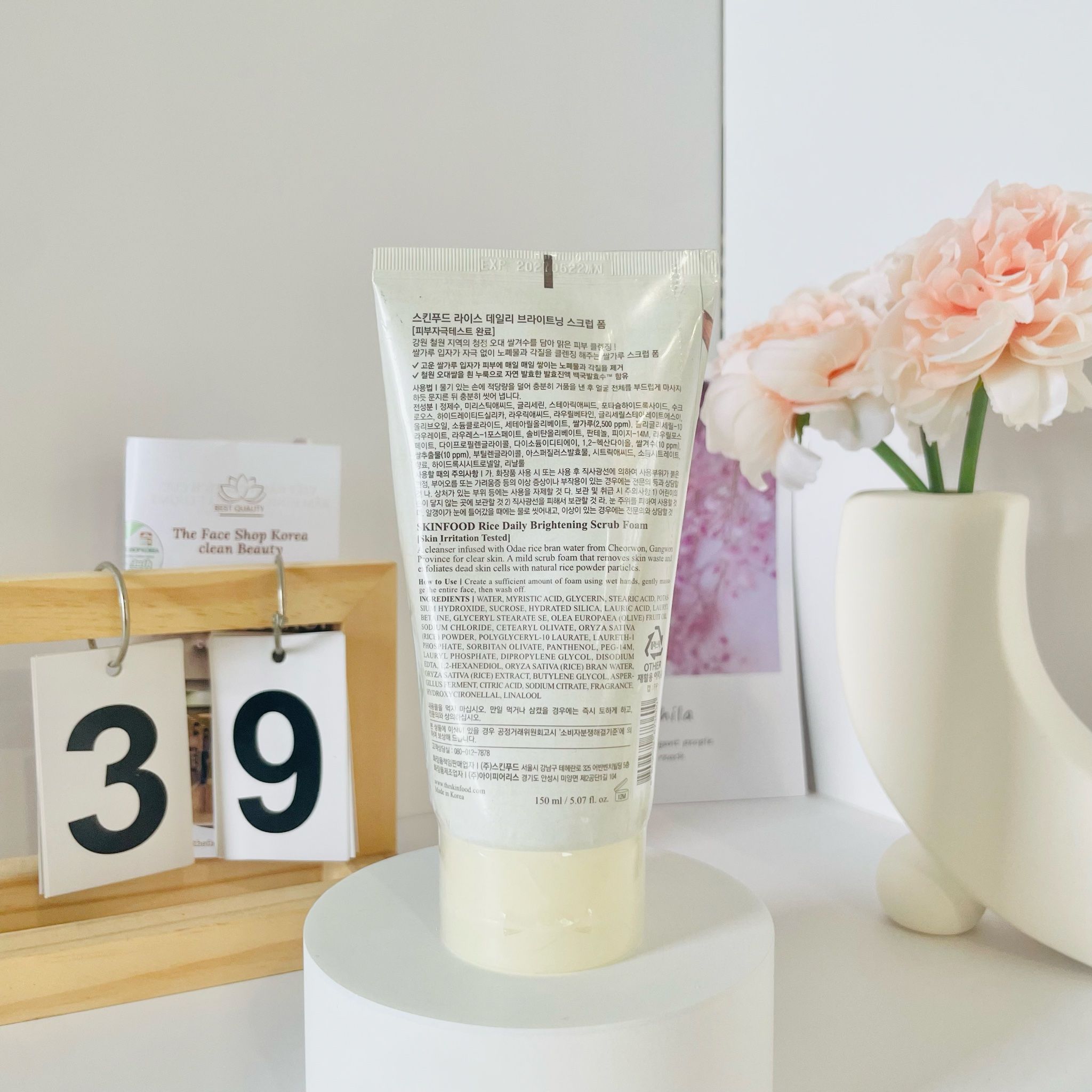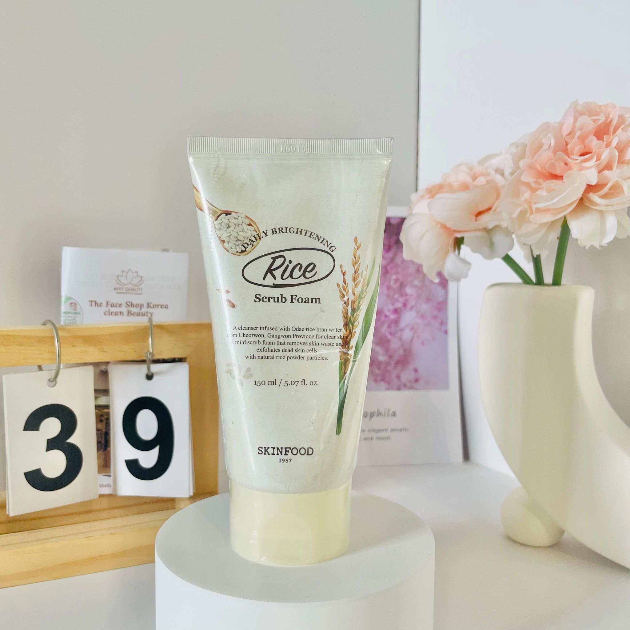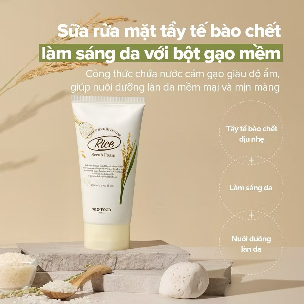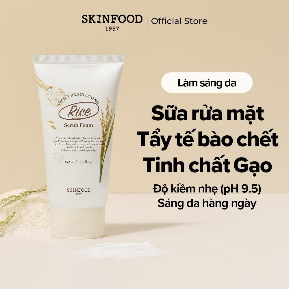 Sữa Rửa Mặt Có Hạt Gạo Làm Trắng Da Và Tẩy Da Chết Skinfood Rice Daily Brightening Scrub Foam 150Ml