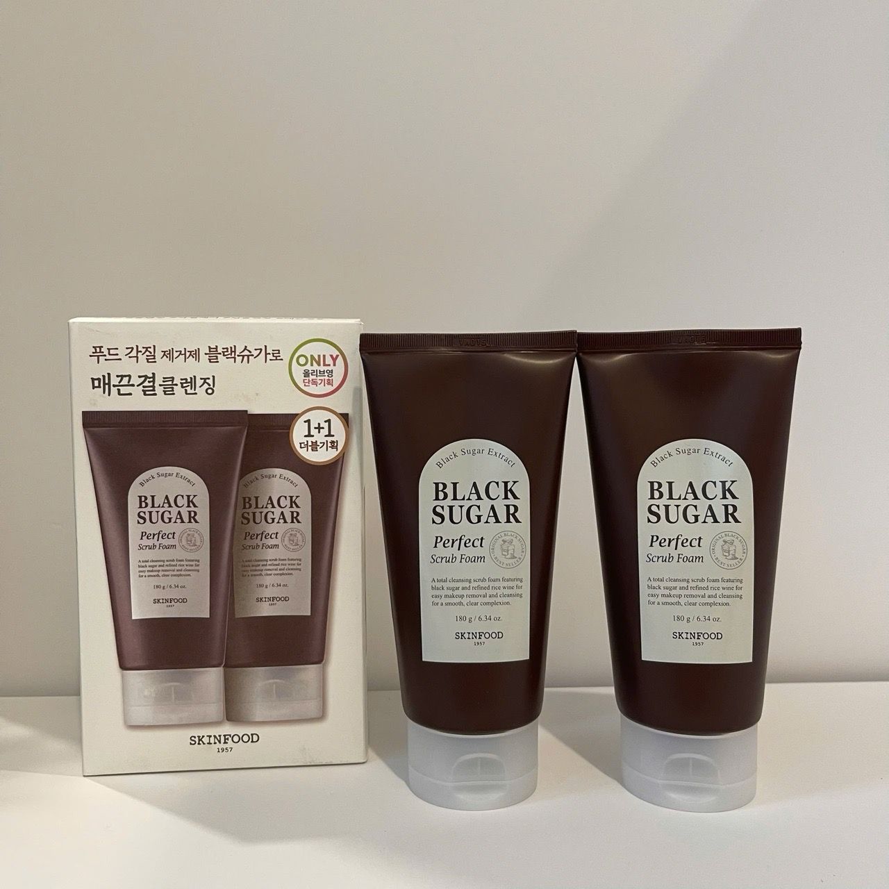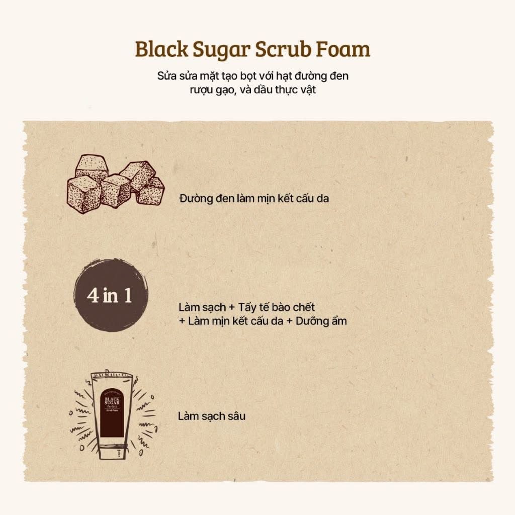 Sữa rửa mặt đường đen tạo bọt SKINFOOD Black Sugar Perfect Scrub Foam 180ml
