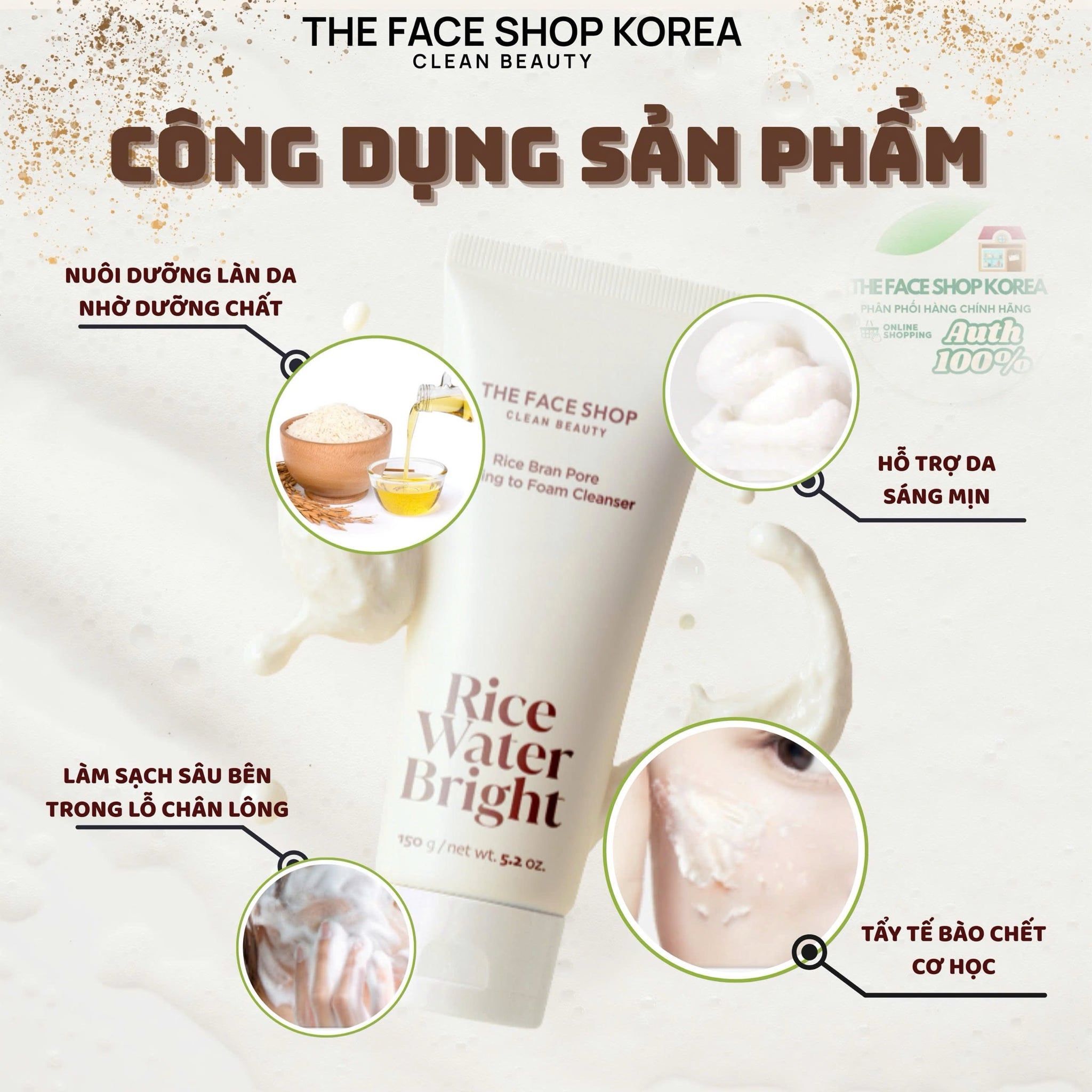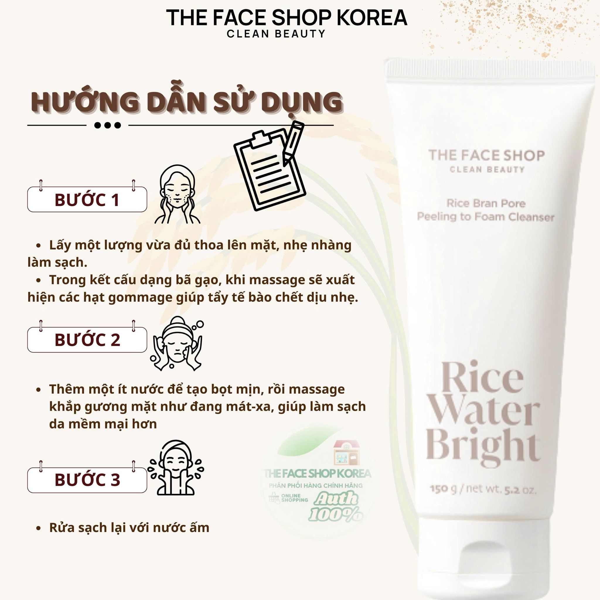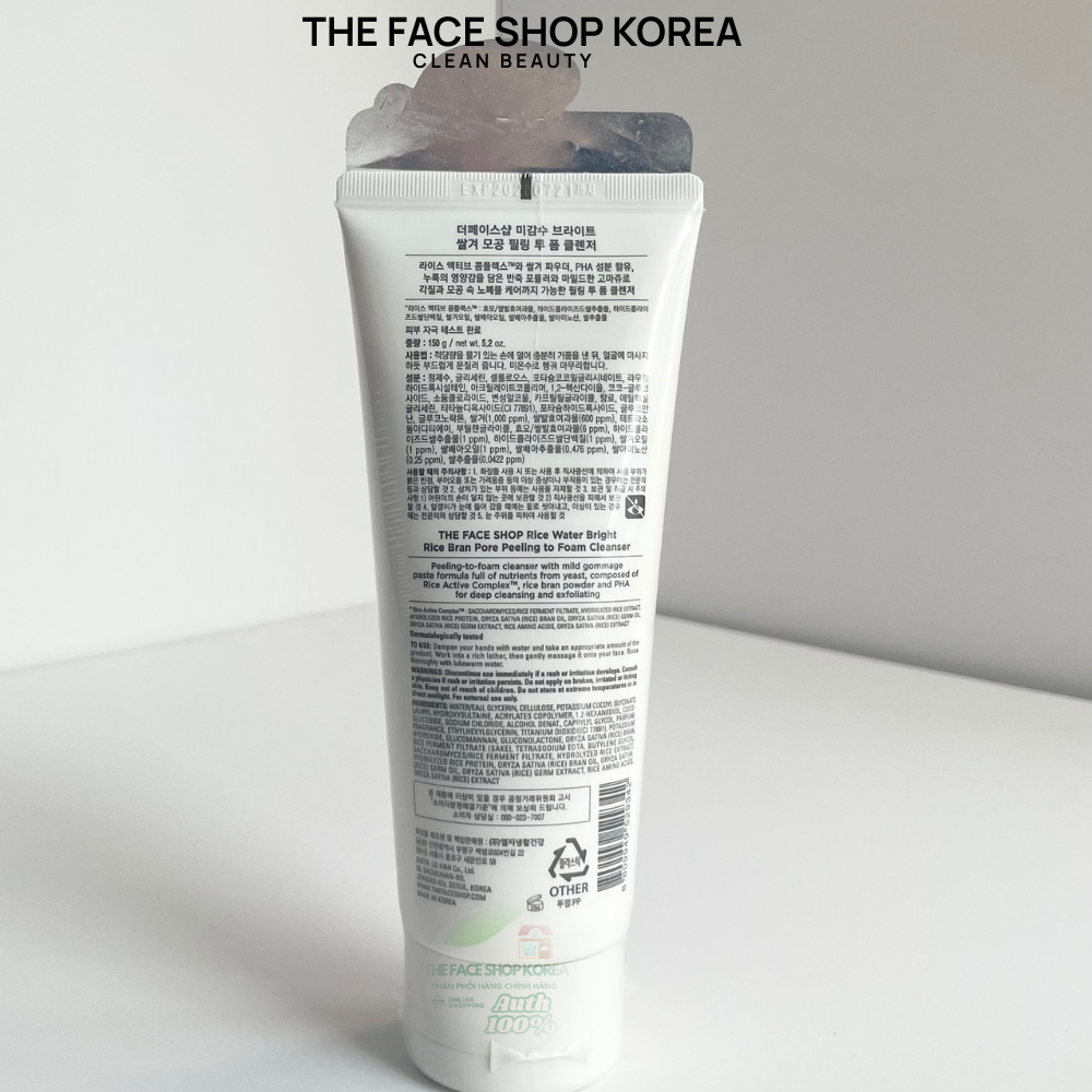 Sữa Rửa Mặt Kiêm Tẩy Da Chết The Face Shop Rice Water Bright Rice Bran Pore Peeling To Foam Cleanser 150ml