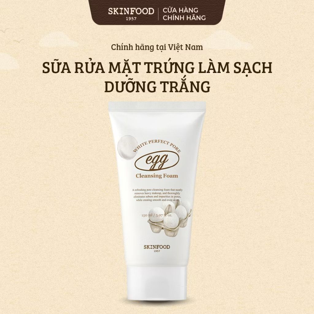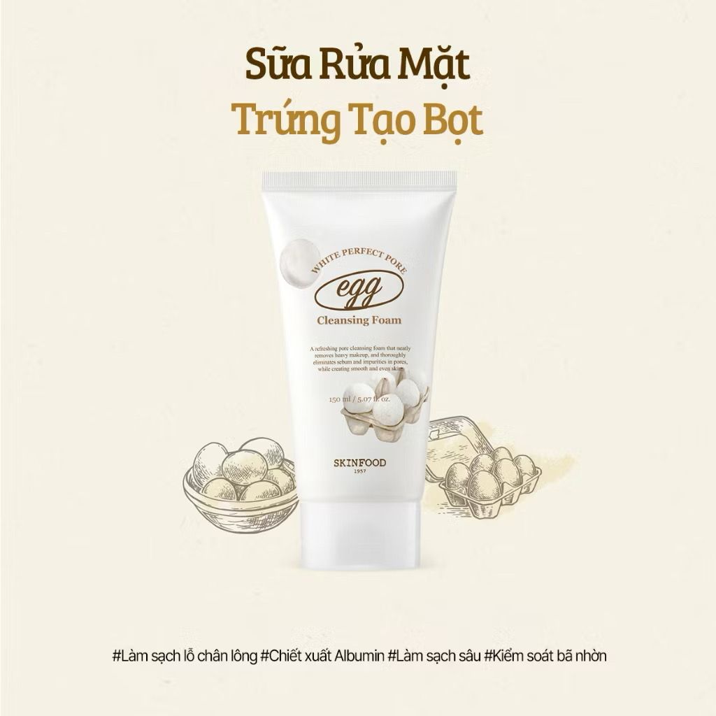 Sữa rữa mặt làm sạch sâu, mịn màng làn da từ lòng trắng trứng THE SKINFOOD EGG WHITE PERFECT PORE CLEASING FOARM 150ml