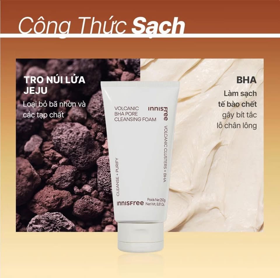 Sữa rửa mặt se khít lỗ chân lông và giảm dầu nhờn Innisfree Volcanic Pore BHA Cleansing Foam 130g