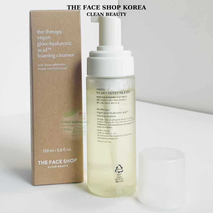 Sữa Rửa Mặt Tạo Bọt Thuần Chay The Face Shop The Therapy Vegan Glow Hyaluronic Acid Foaming Cleanser 150 ML