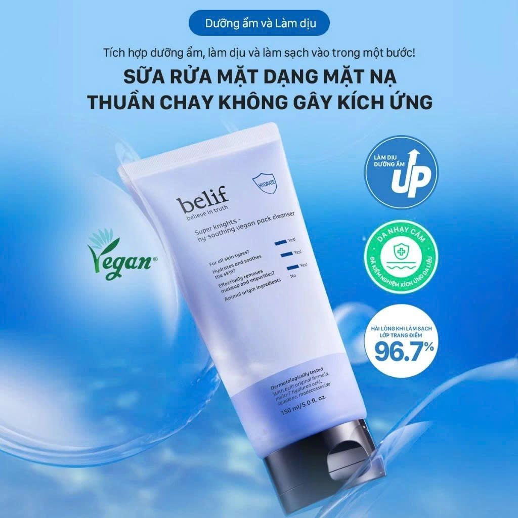 Sữa rửa mặt thuần chay làm dịu và cấp ẩm Belif Super Knights (150ml)