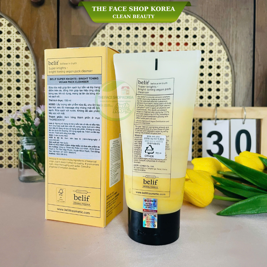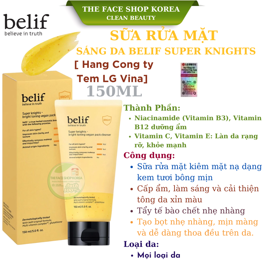 Sữa rửa mặt thuần chay làm sáng da cấp ẩm Belif Super Knights 150ml
