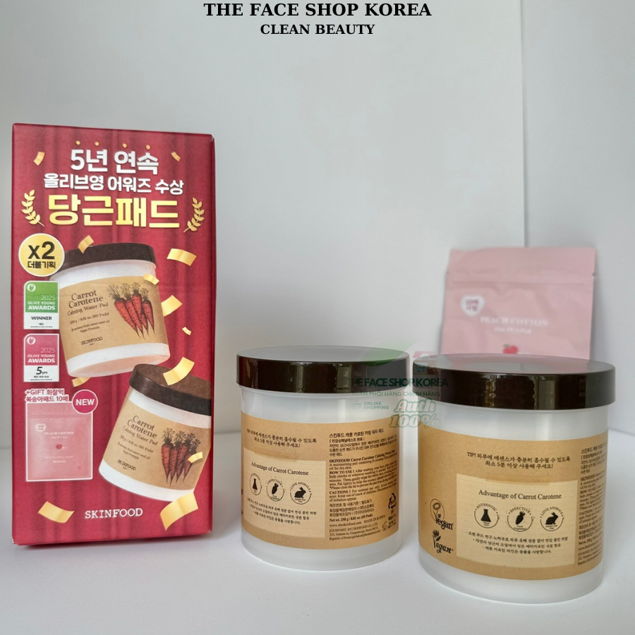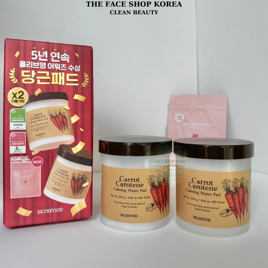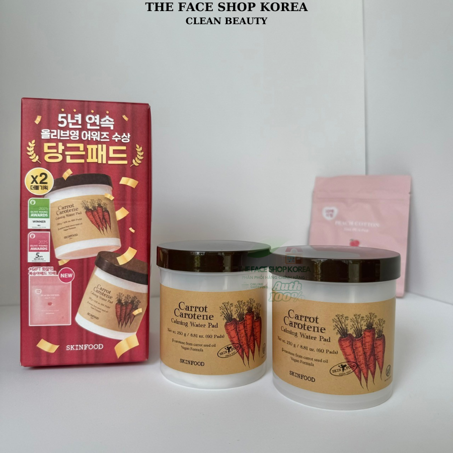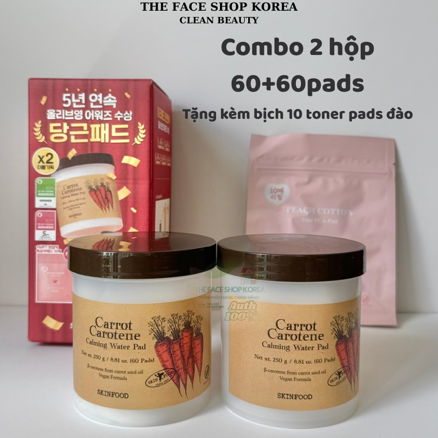 Hộp 60 miếng bông cà rốt làm dịu mẩn đỏ và mát da SKINFOOD Carrot Carotene Calming Water Pad/ Toner Pad Carrot skinfood